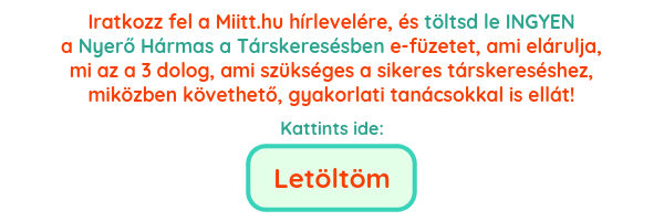 Ha inkább a személyes ismerkedésben hiszel, és nem szeretnéd online húzni az időt, akkor válassz offline közösséget, mint a Miitt.hu Offline Közösség, ahol társaságban, programokon kötetlenül tudsz találkozni hozzád hasonló érdeklődésű egyedülállókkal. Az ilyen személyes közösség nagy előnye az egy-egy alkalmas társkereső eseményekkel szemben, hogy nincs rajtad nyomás, hiszen nem egy alkalom alatt kell csodát tenned, hanem bármikor újra találkozhatsz azokkal, akik szimpatikusak.